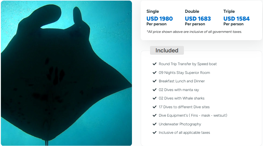 Seasonal Whale Shark & Manta Rays – South Ari Atoll is known as a hotspot for these gentle giants.